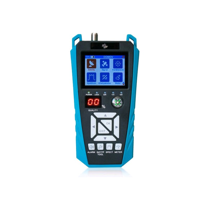 Přístroj pro měření DVB-S/S2 HD signálů. Měření úrovně a kvality signálu, SNR, BER, PWD, konstelační diagramu, spektrum, podpora a měření DiSEqC 1.0, 1.1, 1.2 a USALS.