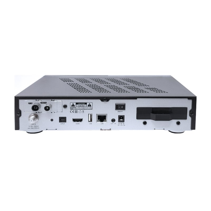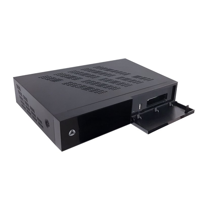 Elegantní design přijímače se bude hodit do každého obývacího pokoje. Na předním panelu se nachází 7-segmentový LED displej. Za dvířky najdete 1x čtečku karet, 2x slot pro CI modul, 1x USB 2.0 a 1x slot pro microSD kartu, kterou můžete využít jako interní úložiště pro Vaše nahrávky.