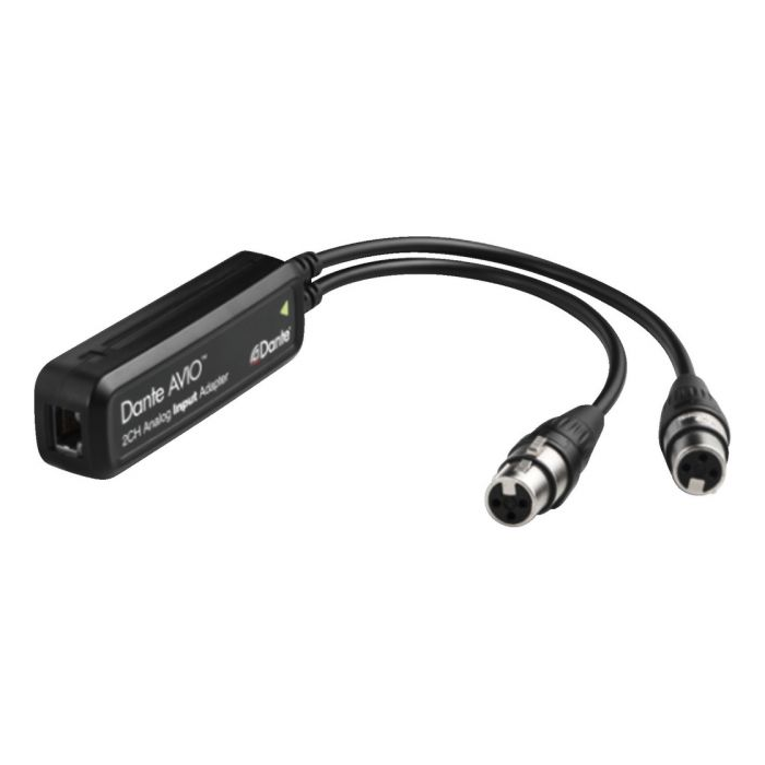 Description: Dante® AVIO analogue input adapter Type: 2-channel Colour: black Power supply: PoE Weight: 165 g Connections: 1 x RJ45,2 x 3-pole XLR inline jack Packing unit: 1 Packaging dimensions (W x H x L): 0.035 x 0.085 x 0.2 m Gross weight: 0.195 kg Net weight: 0.165 kg