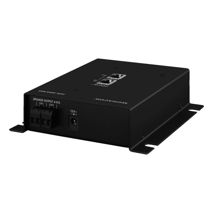 Connections: 1 x RJ45 (Dante® in) 1 x RJ45 (feed-through output) 2 x plug-in screw terminals (speakers)