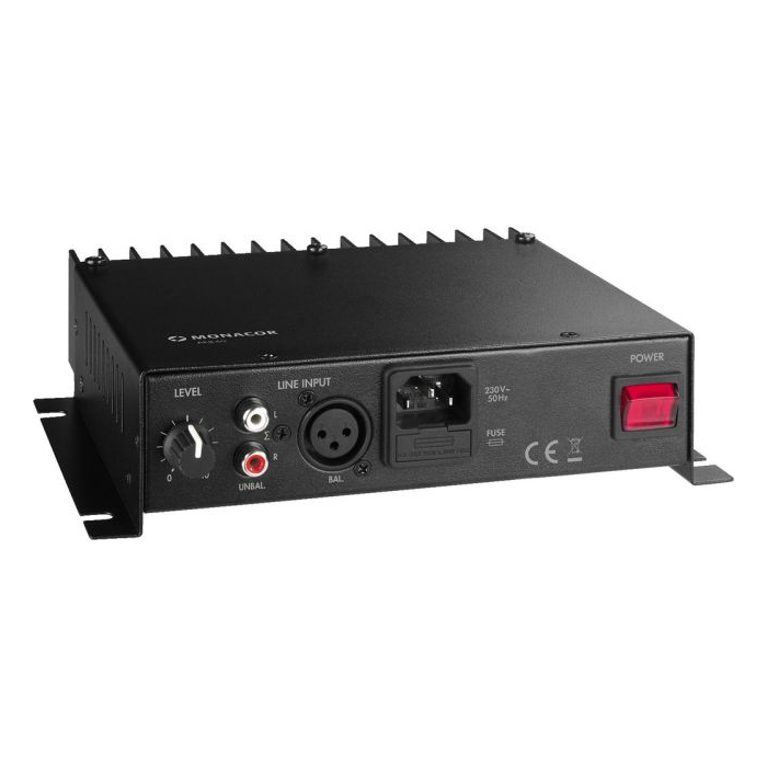 Peak output power: 60 W Power rating: 45 W Power rating at 4 Ω: 45 W Power rating at 8 Ω: 30 W Channels: 1 Inputs: 0.4 V/20 kΩ bal., 11 kΩ unbal. Frequency range: 15-50,000 Hz S/N ratio: > 80 dB THD: < 0.01% Power supply: ˜ 230 V/50 Hz/90 VA Mains voltage: ~ 230 V Mains frequency: 50 Hz Power consumption, operation: 90 VA Admiss. ambient temp.: 0-40 °C Width: 212 mm Height: 52 mm Depth: 190 mm Weight: 2.2 kg Connections: 1 x XLR input, bal., 1 x RCA L/R (input), speaker cable (4-8 Ω) Packaging dimensions (W x H x L): 0.235 x 0.105 x 0.315 m Gross weight: 2.6 kg Net weight: 2.216 kg