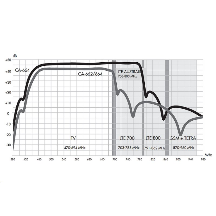 Zesilovač CA-662 je moderní domovní zesilovač pro pozemní analogový a digitální příjem TV/FM signálů s výstupem 117 dBµV s potlačením rušení způsobeného mobilním internetem v pásmech 5G LTE700.
