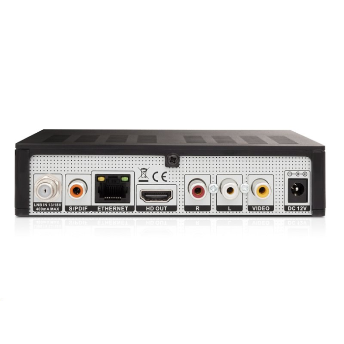 FULL HD digitální satelitní přijímač malých rozměrů s podporou FastScan lazení a zabudovanou Wi-Fi. Napájení 12V přes adaptér.