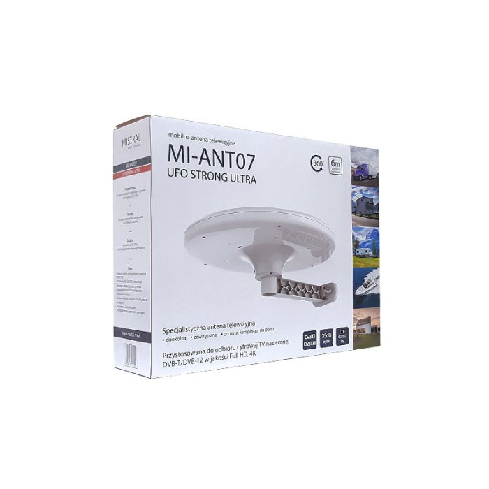 Moderní anténa určená pro mobilní příjem digitálního DVB-T2 H.265 pozemního vysílání a také digitální DAB+ rádia. Vyniká magnetickým i mechanickým uchycením na střechu karavanu nebo auta. Disponuje ziskem až 35 dB a 5G LTE700 filtrem.