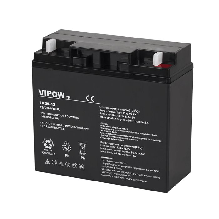 Bezúdržbový GELOVÝ AGM akumulátor 12V/20Ah, rozměry 181 x 77 x 167 mm