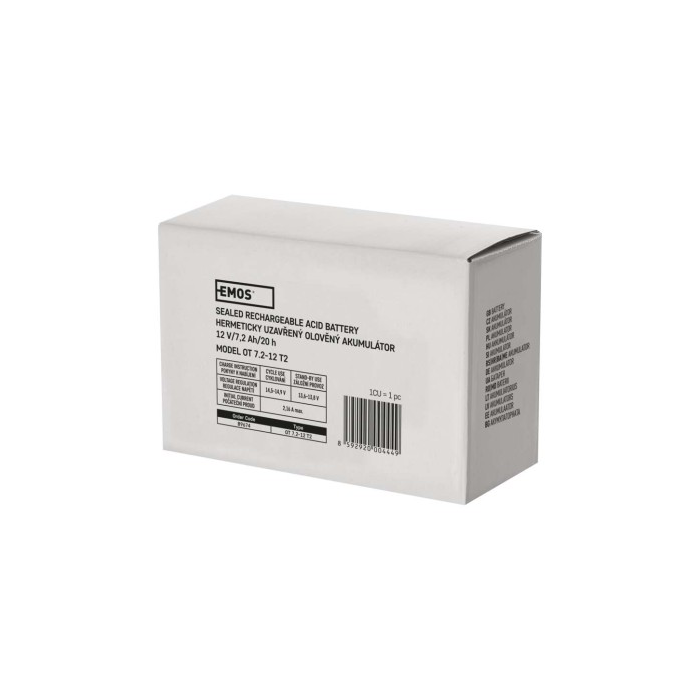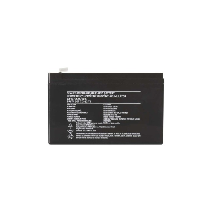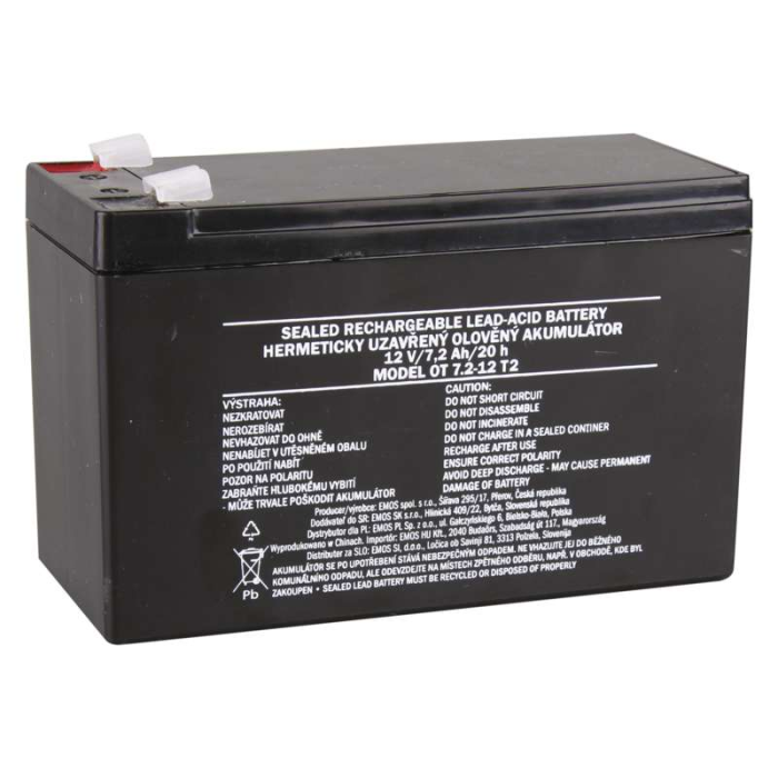 Bezúdržbový AGM akumulátor EMOS 12V/7,2Ah. Rozměr: 151 × 65 × 94 mm