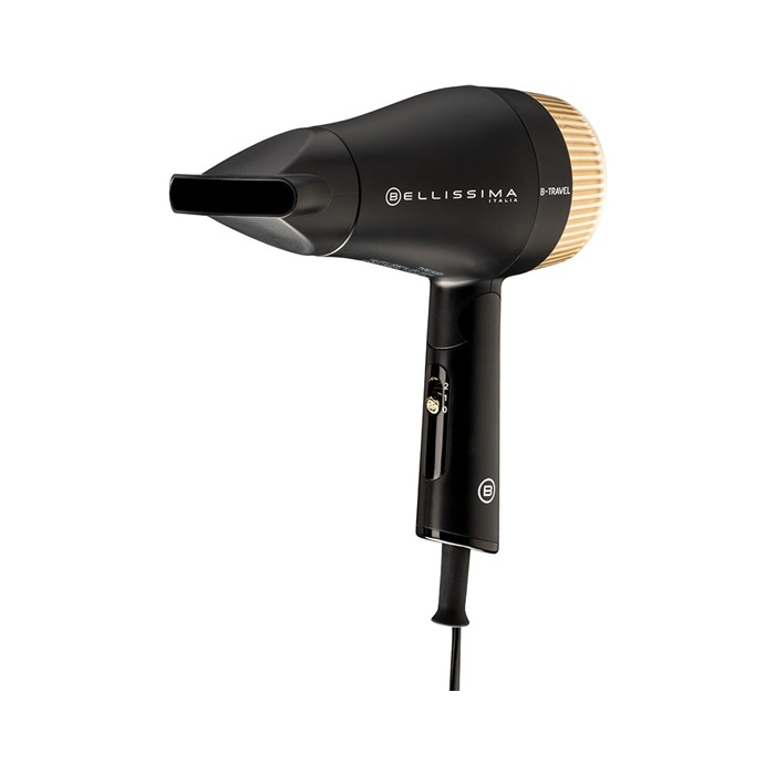 praktický a výkonný cestovní vysoušeč vlasů, dvojité napětí a skládací rukojeť, příkon 1400 W, 2 kombinace průtoku vzduchu a teploty, kosmetická cestovní taška, kabel 1.8