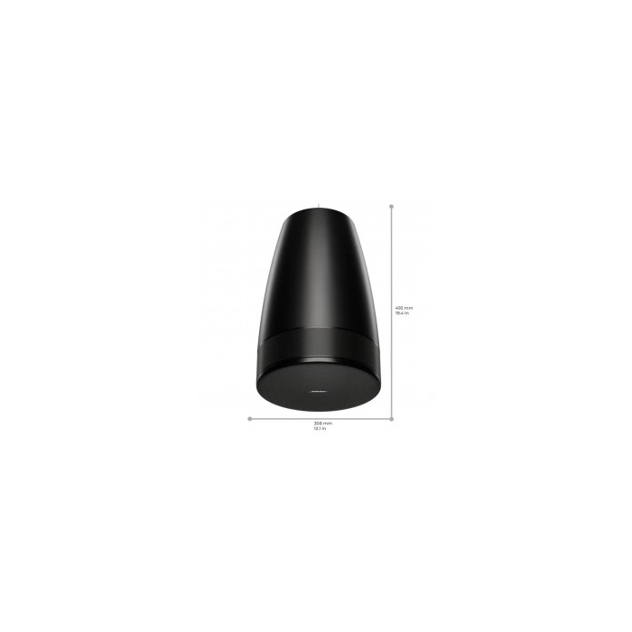 Závesný reproduktorový systém s patentovanou technológiou Ring Array™ s rozšíreným dosahom, ktorý poskytuje vyvážený zvuk, hlboké basy od 40 Hz a elegantný dizajn pre priestory s otvoreným stropom. Čierny.