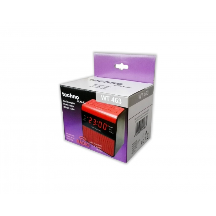 Digitální budík s FM radiopřijímačem s červeným LED displejem, s možnosti ztlumení jasu displeje. Buzení zvukovým signálem nebo radiopřijímačem. 12 nebo 24 hodinový režim zobrazení času.