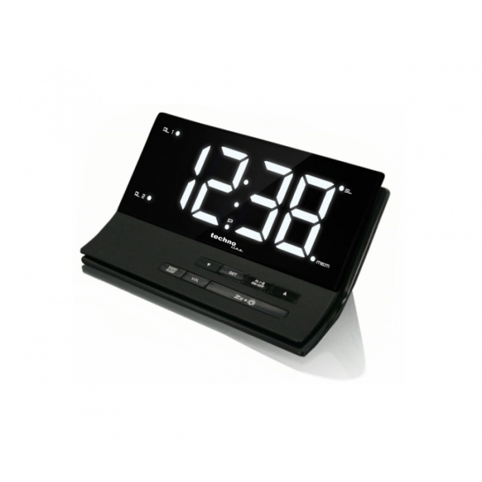 LED digitální budík s FM radiopřijímačem. Možnost ztlumení jasu displeje, paměť pro uložení 10 stanic, 15 stupňů hlasitosti.