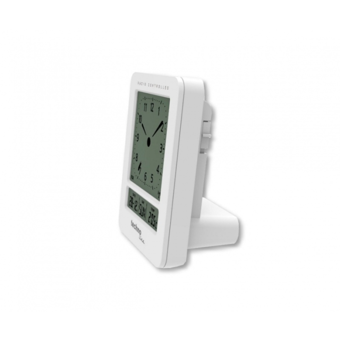 Budík s analogovým LCD displejem a teploměrem. Čas řízený signálem DCF-77 s možností manuálního nastavení. Měření vnitřní teploty. Budík se 2 budícími časy.