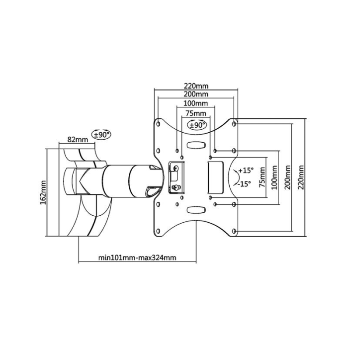 Univerzální nastavitelný ocelový držák pro LED/LCD televizory a monitory o velikosti úhlopříčky 23“-42“. Max. nosnost 30kg, vzdálenost od stěny 101 - 324 mm, max. VESA 200 x 200 mm.