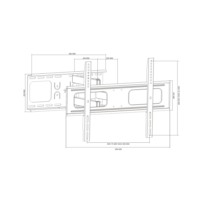 Kvalitní výsuvný polohovatelný držák série HIGH CLASS pro LED, OLED, LCD a plazmové televizory s uhlopříčkou 37" - 70". Maximální nosnost 50 kg.