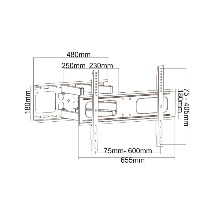 Univerzální robustní plně nastavitelný ocelový držák pro LED/LCD televizory a monitory o velikosti úhlopříčky 37“-80“. Max. nosnost 60kg, vzdálenost od stěny 64-510 mm, VESA 600 x 400 mm.