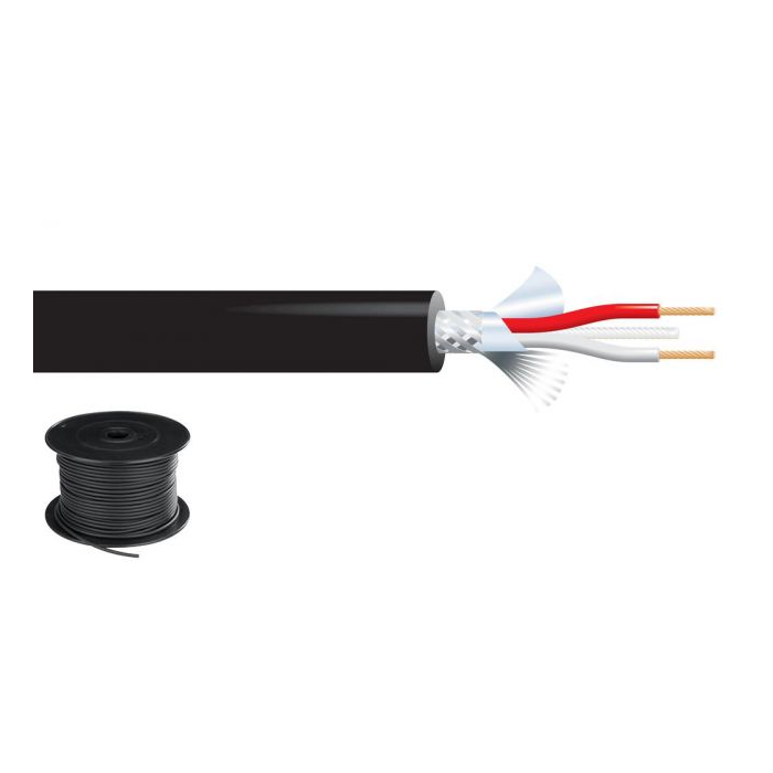 Intended use: DMX Length: 100 m Colour: black Internal conductor: 2 x 0.22 mm2 Material: copper No. of cores: 2 Cable diameter: Ø 4.5 mm Metre marking: yes Shielding: common, double Impedance: 110 Ω Capacitance: 57 pF/m Packaging: reel Weight: 3.28 kg Other features: suitable for digital use