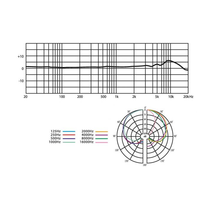 Description: overhead hanging microphone Transmission method: cable Polar pattern: cardioid System: condenser Audio frequency range: 20-20,000 Hz Nominal impedance: 100 Ω Sensitivity: 15.8 mV/Pa Max. sound pressure: 140 dB Power supply: DC 48 V, phantom power Housing material: metal Prípustná teplota okolia: 0-40 °C Hmotnosť: 140 g Cable: 8 m Connection: XLR, bal. Packing dimensions (W x H x L): 0.095 x 0.065 x 0.38 m Brutto hmotnosť: 0.458 kg Netto hmotnosť: 0.326 kg