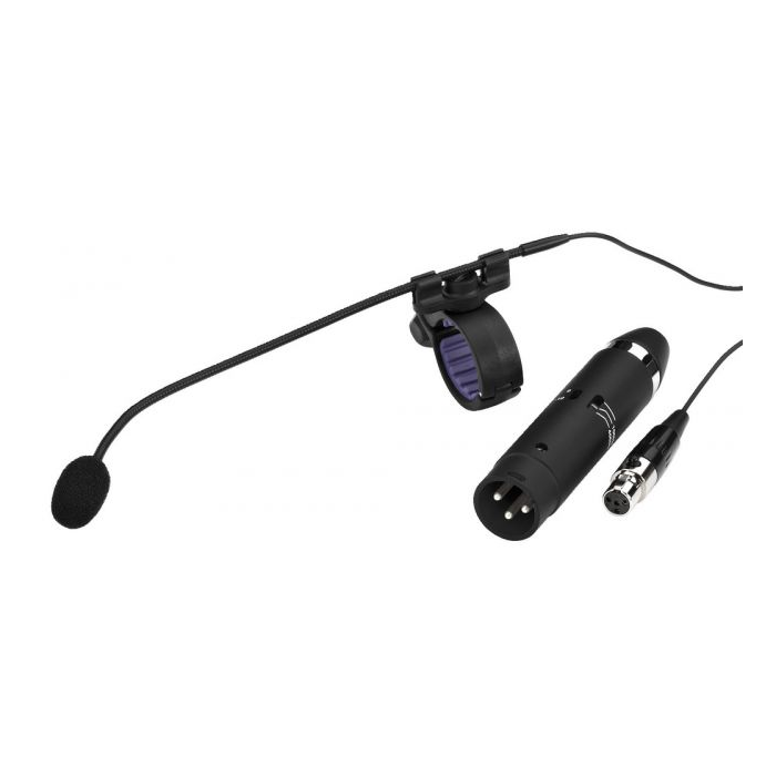 Description: instrument microphone Transmission method: cable Polar pattern: omnidir. System: back electret Audio frequency range: 20-20,000 Hz Nominal impedance: 1.5 kΩ Sensitivity: 12.6 mV/Pa Max. sound pressure: 130 dB Power supply: DC 48 V, phantom power via power supply adapter Housing material: plastic Admiss. ambient temp.: 0-40 °C Weight: 8 g Cable: 1.4 m Connection: 4-pole mini XLR adapter: XLR, bal. Packaging dimensions (W x H x L): 0.17 x 0.09 x 0.37 m Gross weight: 0.752 kg Net weight: 0.52 kg