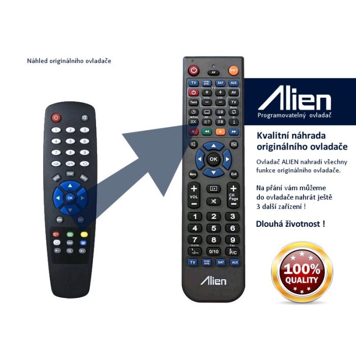 Ovladač je naprogramován na vašem zařízení. ALIEN nahrazuje všechny funkce originálního ovladače.