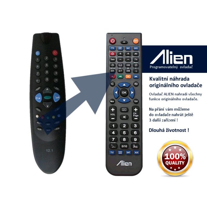 Ovladač obdržíte naprogramovaný na vaše zařízení. ALIEN nahrazuje všechny funkce originálního ovladače.