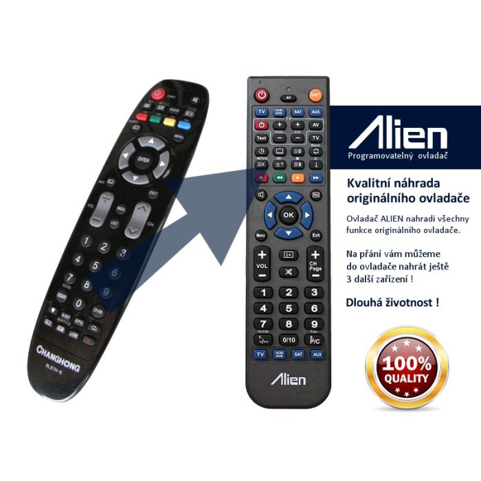 Ovladač je naprogramován na vašem zařízení. ALIEN nahrazuje všechny funkce originálního ovladače.