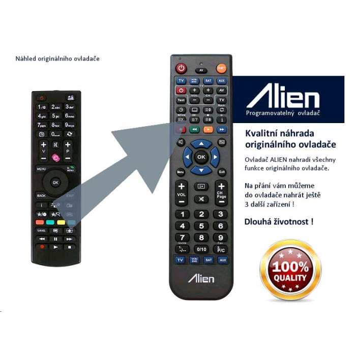 Ovladač je naprogramován na vašem zařízení. ALIEN nahrazuje všechny funkce originálního ovladače.