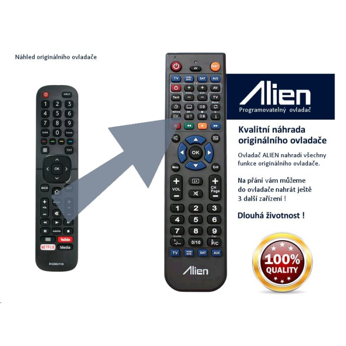 Ovladač obdržíte naprogramovaný na vaše zařízení. ALIEN nahrazuje všechny funkce originálního ovladače.