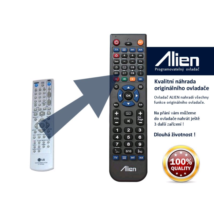 Ovladač je naprogramován na vašem zařízení. ALIEN nahrazuje všechny funkce originálního ovladače.