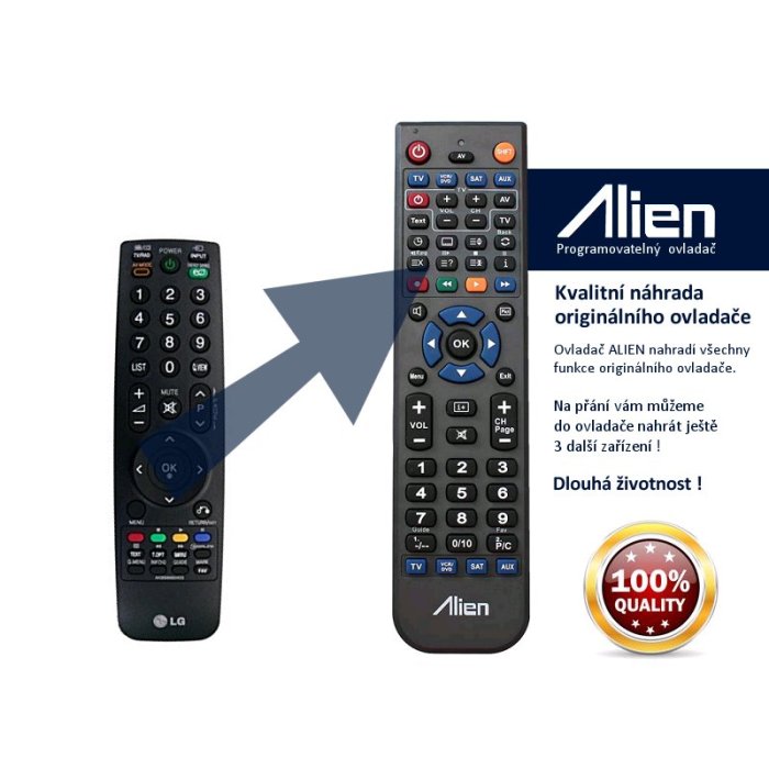 Ovladač je naprogramován na vašem zařízení. ALIEN nahrazuje všechny funkce originálního ovladače.
