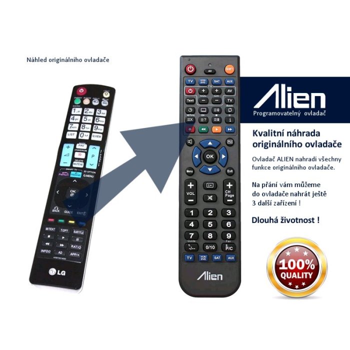 Ovladač je naprogramován na vašem zařízení. ALIEN nahrazuje všechny funkce originálního ovladače.