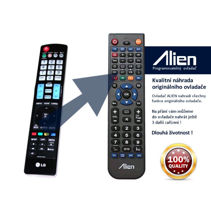Ovladač je naprogramován na vašem zařízení. ALIEN nahrazuje všechny funkce originálního ovladače.
