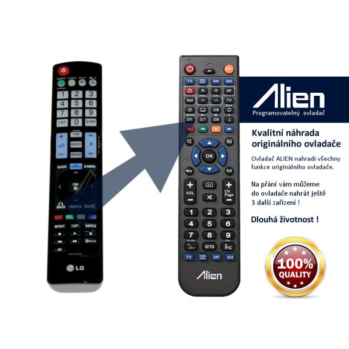 Ovladač je naprogramován na vašem zařízení. ALIEN nahrazuje všechny funkce originálního ovladače.