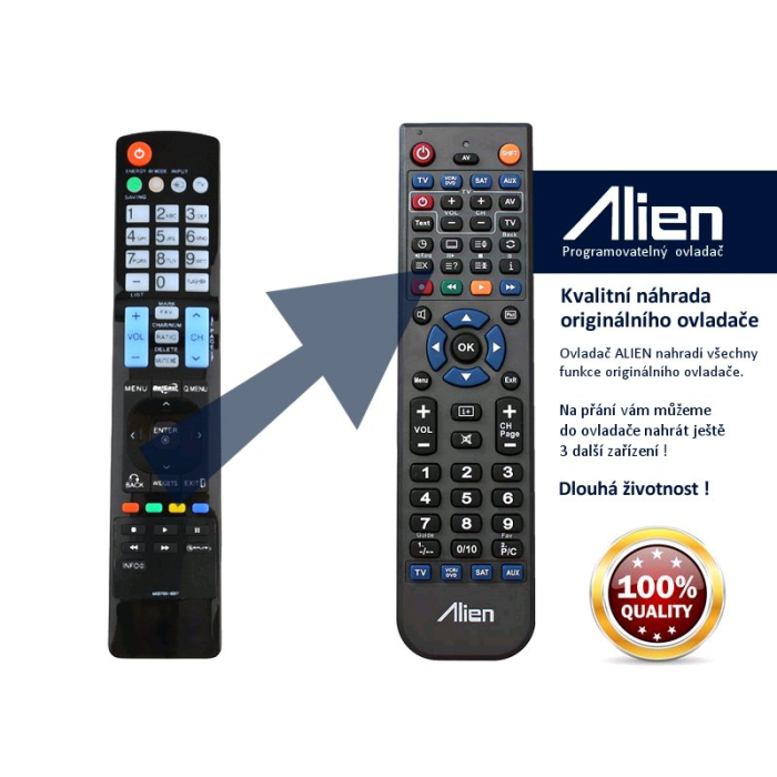 Ovladač je naprogramován na vašem zařízení. ALIEN nahrazuje všechny funkce originálního ovladače.