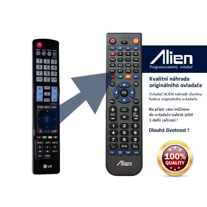 Ovladač je naprogramován na vašem zařízení. ALIEN nahrazuje všechny funkce originálního ovladače.