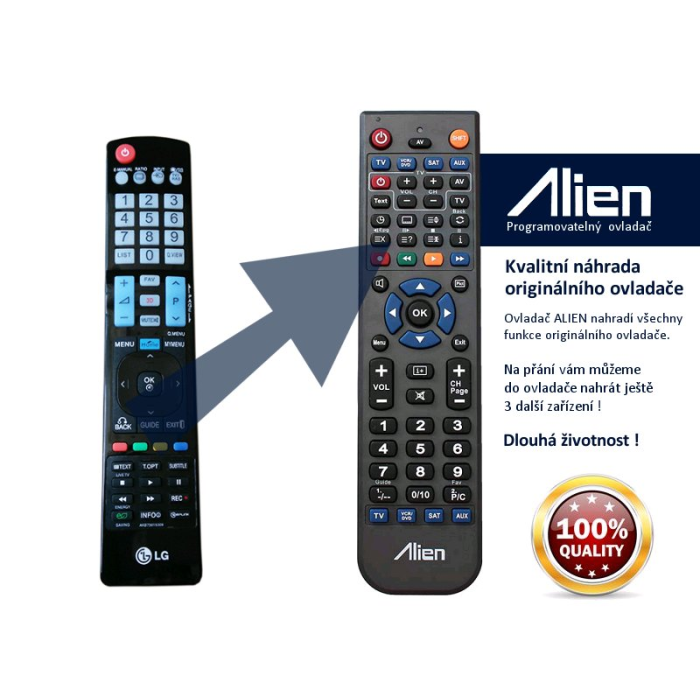 Ovladač je naprogramován na vašem zařízení. ALIEN nahrazuje všechny funkce originálního ovladače.