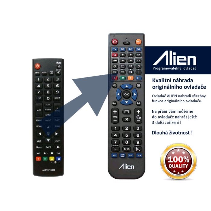 Ovladač je naprogramován na vašem zařízení. ALIEN nahrazuje všechny funkce originálního ovladače.