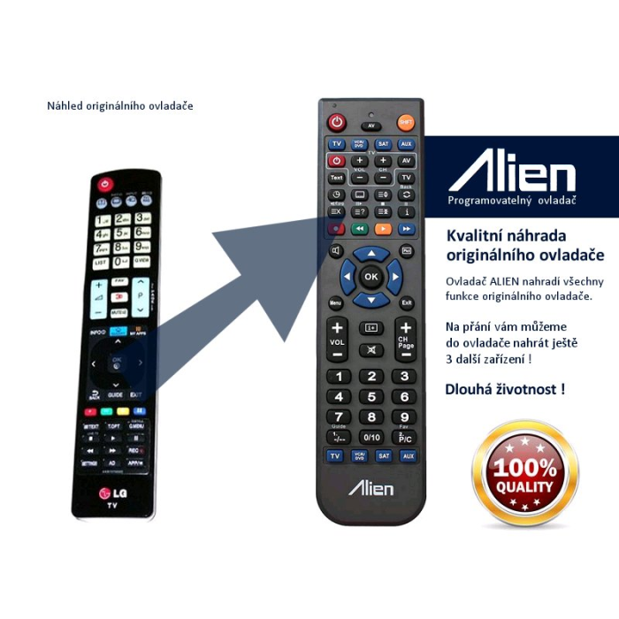 Ovladač je naprogramován na vašem zařízení. ALIEN nahrazuje všechny funkce originálního ovladače.