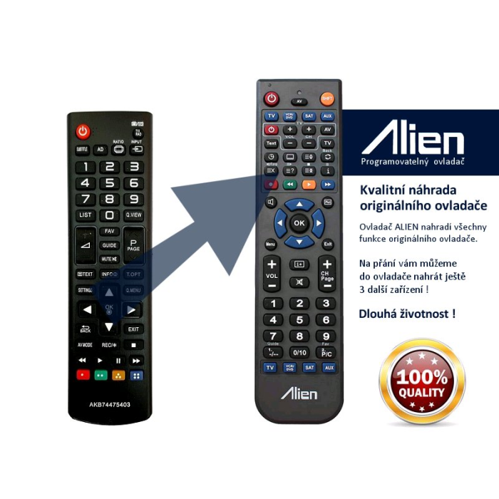 Ovladač obdržíte naprogramovaný na vaše zařízení. ALIEN nahrazuje všechny funkce originálního ovladače.
