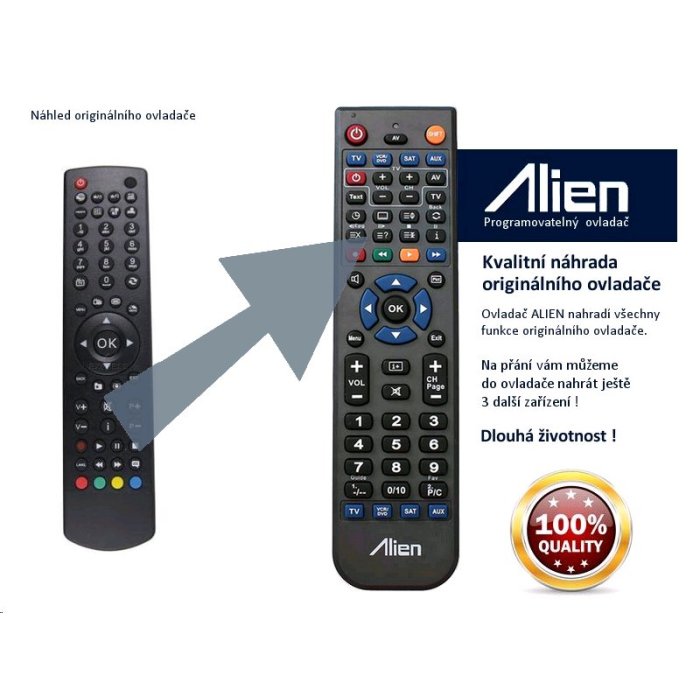 Ovladač je naprogramován na vašem zařízení. ALIEN nahrazuje všechny funkce originálního ovladače.