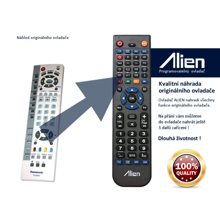Náhradní dálkový ovladač, většina funkcí stejných jako u originálního ovládání. Dlouhá životnost, kvalitní provedení. Ihned k použití!