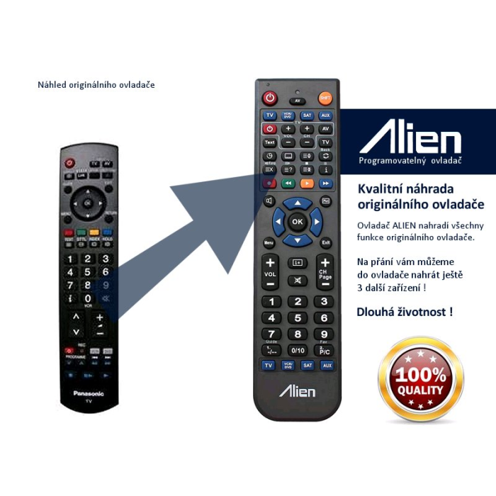 Náhradní dálkový ovladač, většina funkcí stejných jako u originálního ovládání. Dlouhá životnost, kvalitní provedení. Ihned k použití!