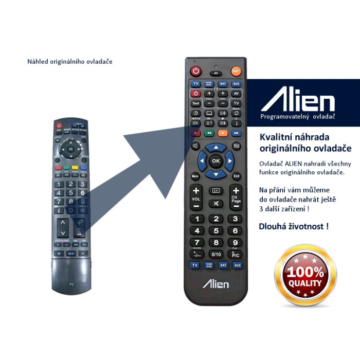 Náhradní dálkový ovladač, většina funkcí stejných jako u originálního ovládání. Dlouhá životnost, kvalitní provedení. Ihned k použití!