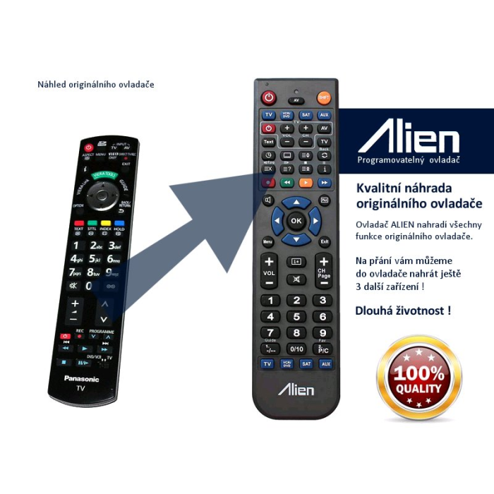 Náhradní dálkový ovladač, většina funkcí stejných jako u originálního ovládání. Dlouhá životnost, kvalitní provedení. Ihned k použití!