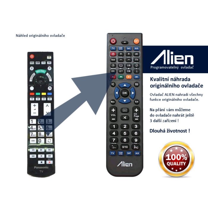 Náhradní dálkový ovladač, většina funkcí stejných jako u originálního ovládání. Dlouhá životnost, kvalitní provedení. Ihned k použití!