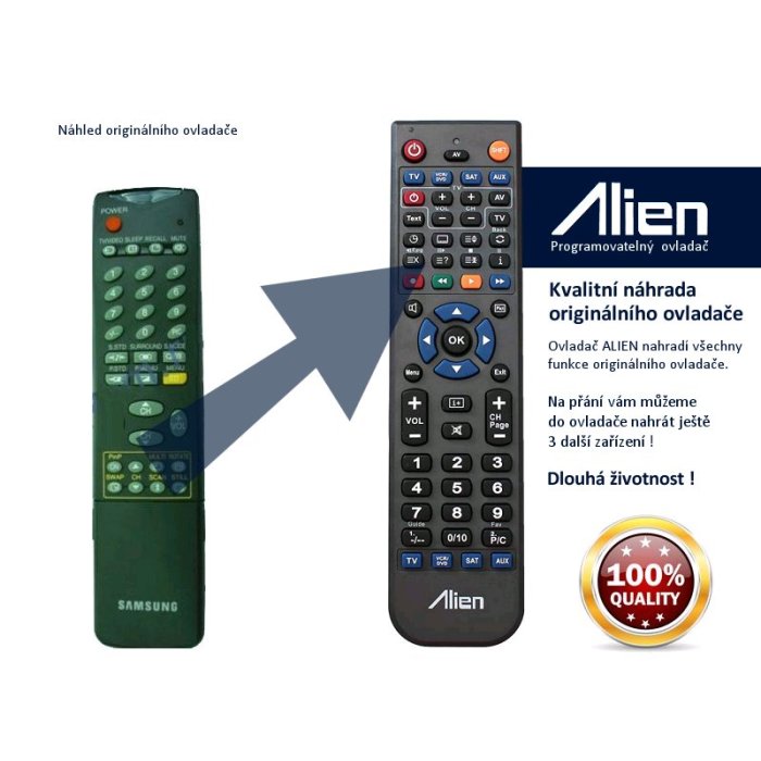 Náhradní dálkový ovladač, většina funkcí stejných jako u originálního ovládání. Dlouhá životnost, kvalitní provedení. Ihned k použití!