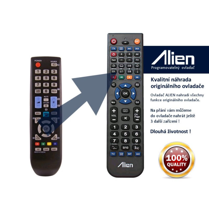 Ovladač obdržíte naprogramovaný na vaše zařízení. ALIEN nahrazuje všechny funkce originálního ovladače.