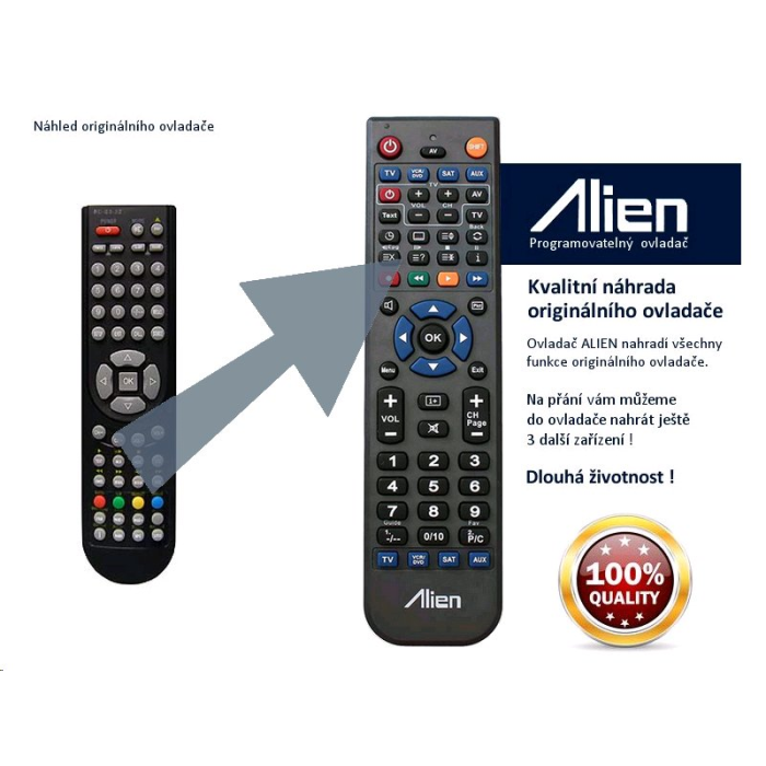 Ovladač je naprogramován na vašem zařízení. ALIEN nahrazuje všechny funkce originálního ovladače.
