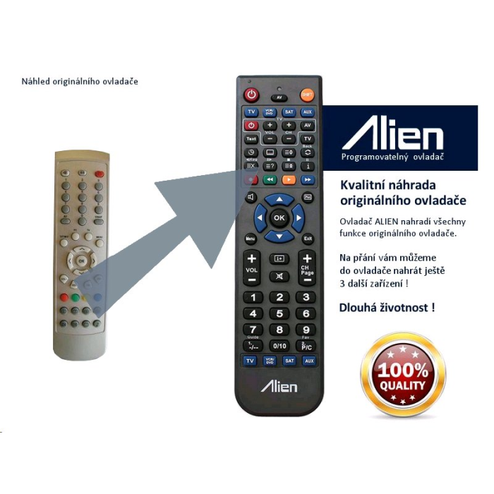 Ovladač je naprogramován na vašem zařízení. ALIEN nahrazuje všechny funkce originálního ovladače.