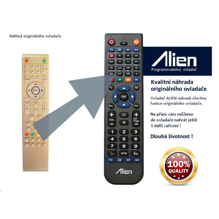 Ovladač je naprogramován na vašem zařízení. ALIEN nahrazuje všechny funkce originálního ovladače.