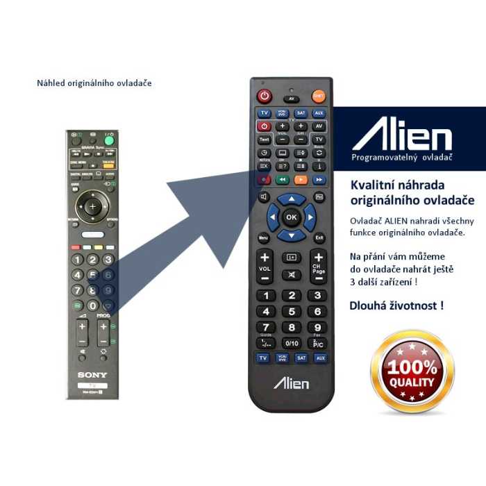 Pod značkou ALIEN získáte kvalitní a levnou náhradu originálního ovladače, který již není často k dispozici nebo je několikanásobně dražší. Ovladač ALIEN svou kvalitou a mechanickým zpracováním často předčí originální ovladače a zaručuje tak dlouhou životnost.
