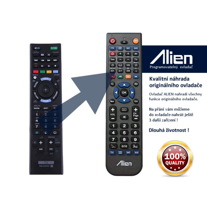 Pod značkou ALIEN získáte kvalitní a levnou náhradu originálního ovladače, který již není často k dispozici nebo je několikanásobně dražší. Ovladač ALIEN svou kvalitou a mechanickým zpracováním často předčí originální ovladače a zaručuje tak dlouhou životnost.